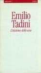 Emilio ad appena vent’anni, nel 1947, mostra i suoi interessi intellettuali e pubblica un poemetto sulla rivista di Elio Vittorini “Politecnico”: La passione secondo San Matteo per il quale riceve un premio da Montale, Solmi e Muscetta. Si laurea in Lettere ed inizia un mai interrotto lavoro di scrittura: poesie, saggi, romanzi. Nel 1960 pubblica Tre poemetti , nel 1963 per Rizzoli il romanzo Le armi l’amore, dedicato all’impresa di Carlo Pisacane. Poi seguirono L’Opera, (Einaudi 1980); La lunga notte, (Rizzoli) 1987 (vince il Premio Campiello); L’insieme delle cose, poesia edito da Garzanti (1991), La tempesta, Einaudi 1993 (Premio Strega), La deposizione ( Einaudi 1997), La distanza ( Einaudi 1998), L’Occhio della pittura 1999, Eccetera ultimo romanzo pubblicato post mortem 2002 a cura del figlio Francesco Tadini e a seguire, a cura di Anna Modena in collaborazione Fondazione del Correre della Sera Poemetti e poesie (Einaudi 2011), Testo e Immagine (2016) autori vari Pagine D’arte.