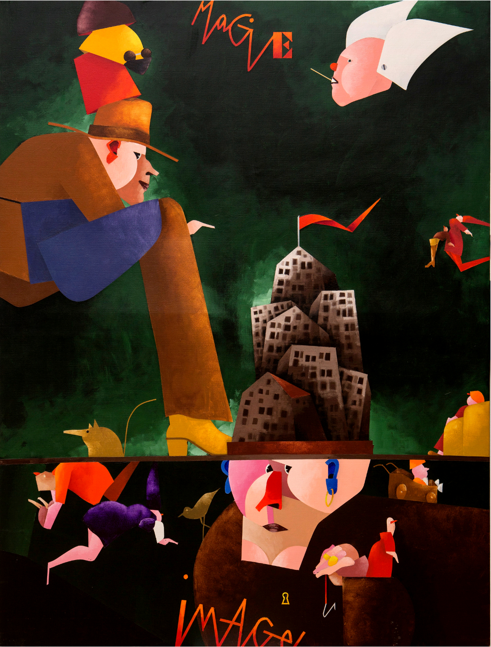 Emilio Tadini (1927-2002) Vita di Voltaire 1968 acrylic on canvas 162 x 130 cm.