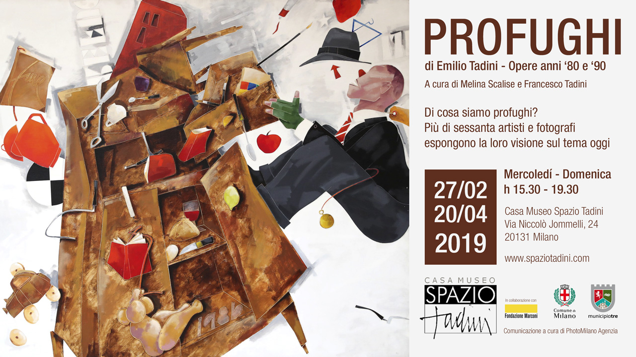 Dal 27 febbraio al 20 aprile la mostra di Emilio Tadini Profughi presso la Casa Museo Spazio Tadini ex atelier dell’artista in via Niccolò Jommelli, 24 Milano (www.spaziotadini.com).