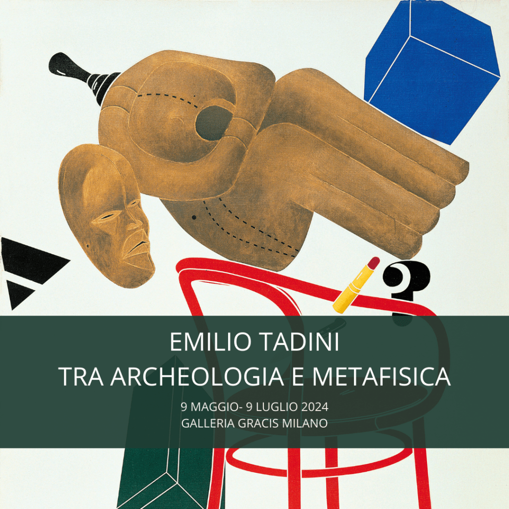 Dal 9 maggio al 9 luglio una mostra di Emilio Tadini in dialogo con De Chirico: “Emilio Tadini tra archeologia e metafisica” alla Galleria Gracis, inaugurazione alle ore 18 in Piazza Castello 16 a Milano.