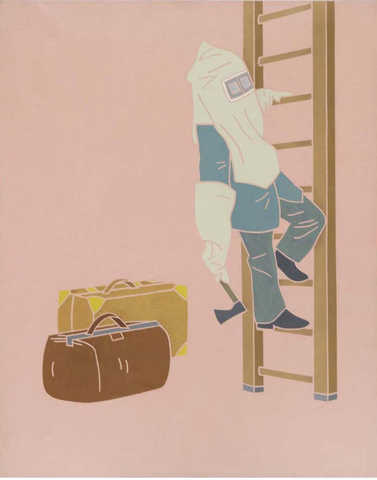 Nella serie Profughi i personaggi di Tadini sono persone che come pacchi si muovono in spazi in assenza di gravità con dei cartellini attaccati addosso. Uomini ed oggetti, insieme, sono in uno spazio aereo e privo di gravità. Non c’è territorio di appartenenza c’è solo il viaggio. Un percorso da fare insieme alle cose, quelle che per Tadini rimangono oltre l’uomo a significare ciò che c’era. Presenze e assenze. Nature morte che parlano di noi e raccontano storie di vita terrena. A volte sono fardelli da cui non riusciamo a separarci e ci sono pesci sugli alberi a ricordarci lo stravolgimento dei luoghi e l’atto estremo di sopravvivenza e di non rinuncia alla vita.